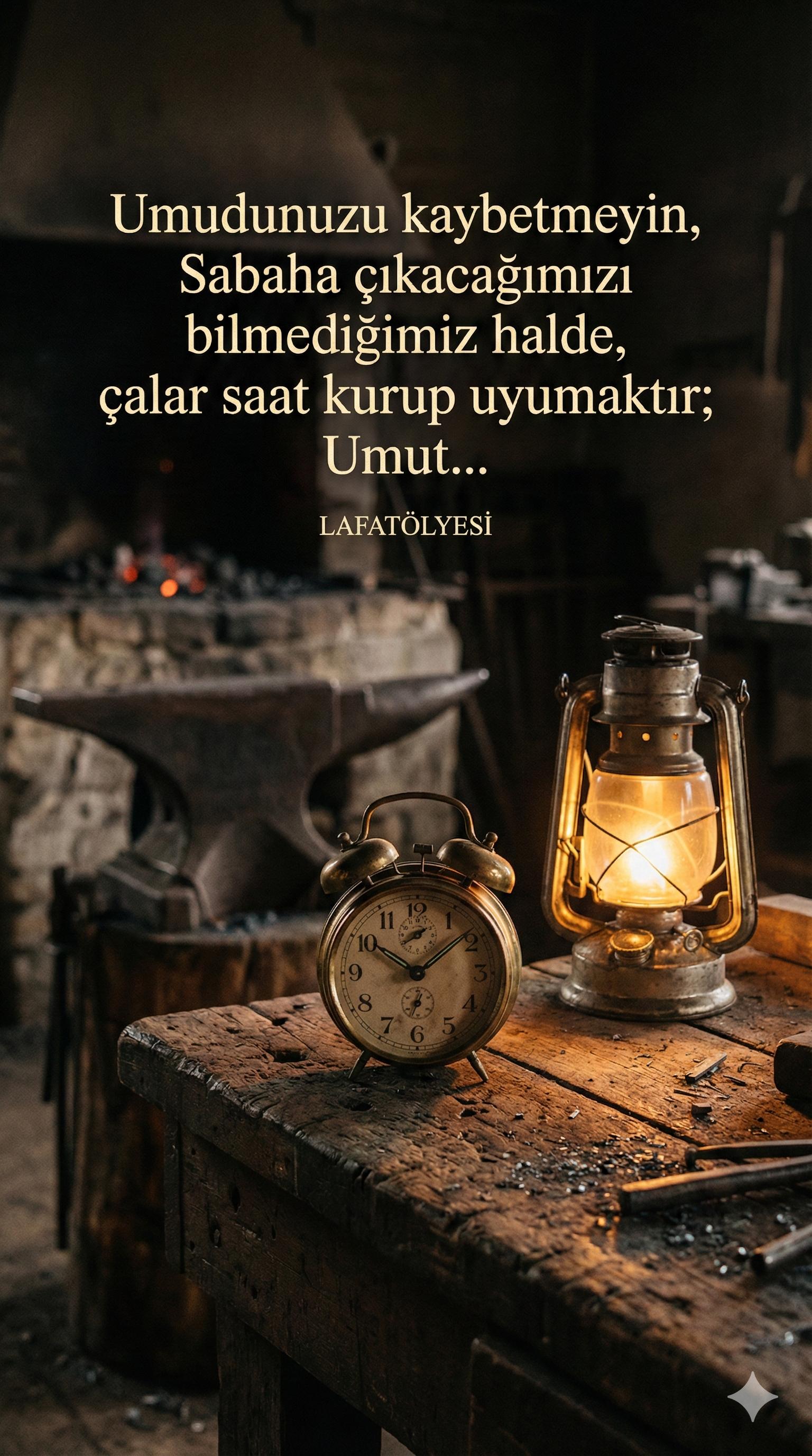 "Umudunuzu kaybetmeyin... Sabah çıkacağımızı bilmediğimiz halde çalar saat kurup uyumaktır ; Umut..."